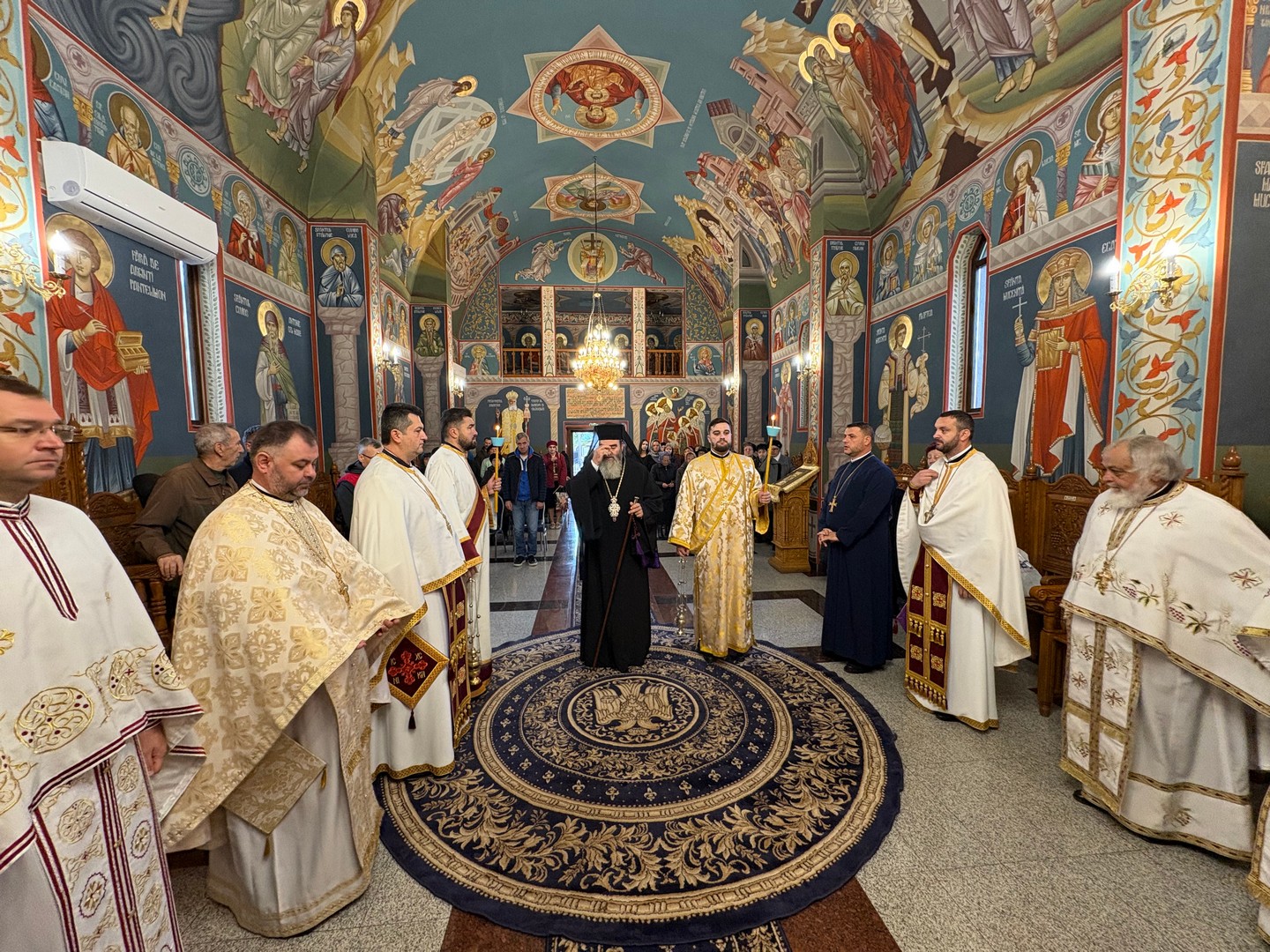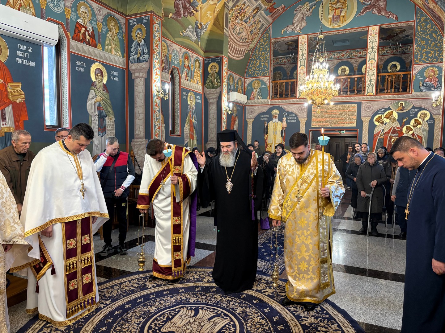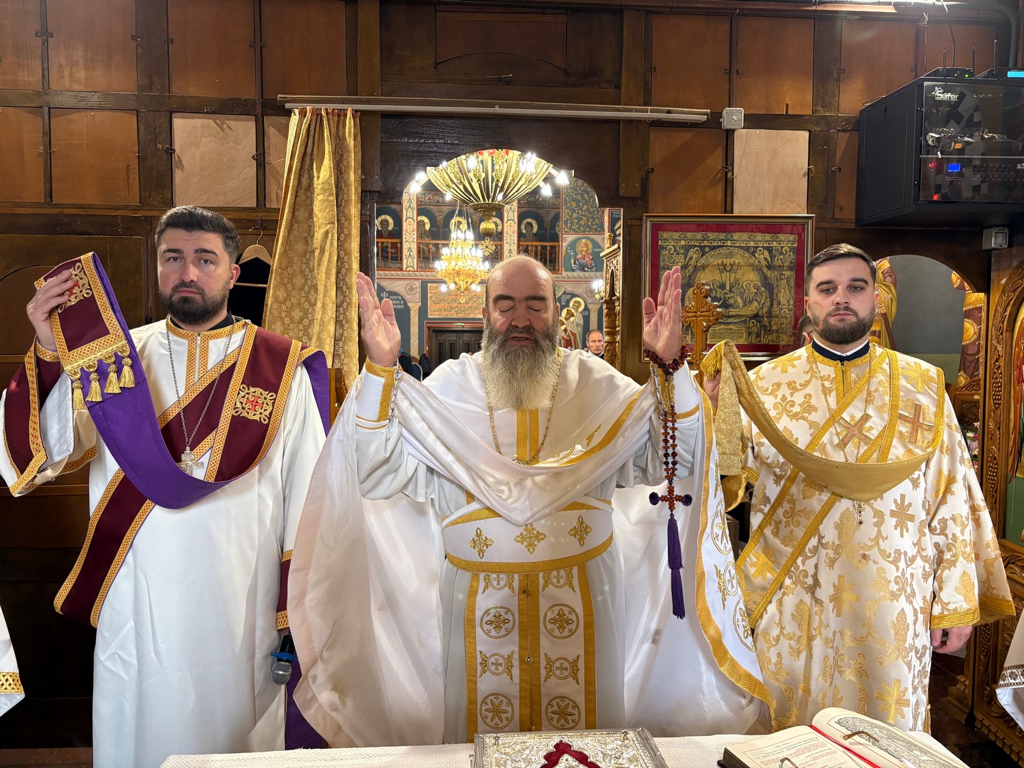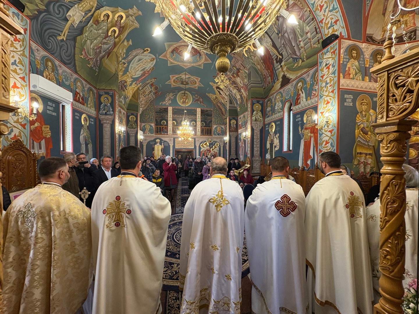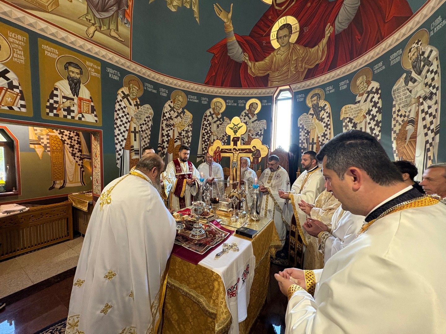 Sfânta Liturghie a fost oficiată de preacuviosul părinte Arhimandrit Rafail, vicar eparhial, înconjurat de un sobor de preoți și arhidiaconi.