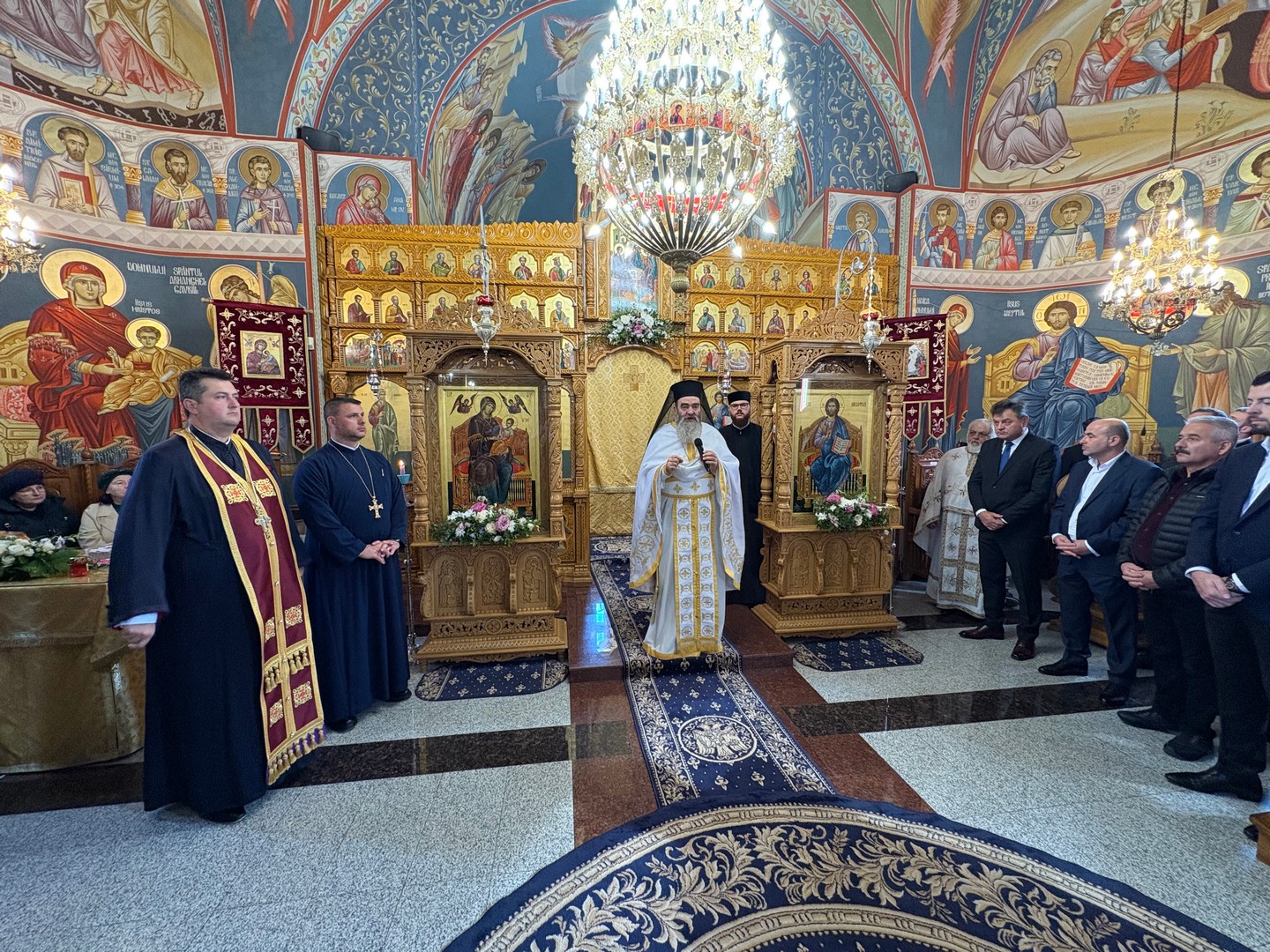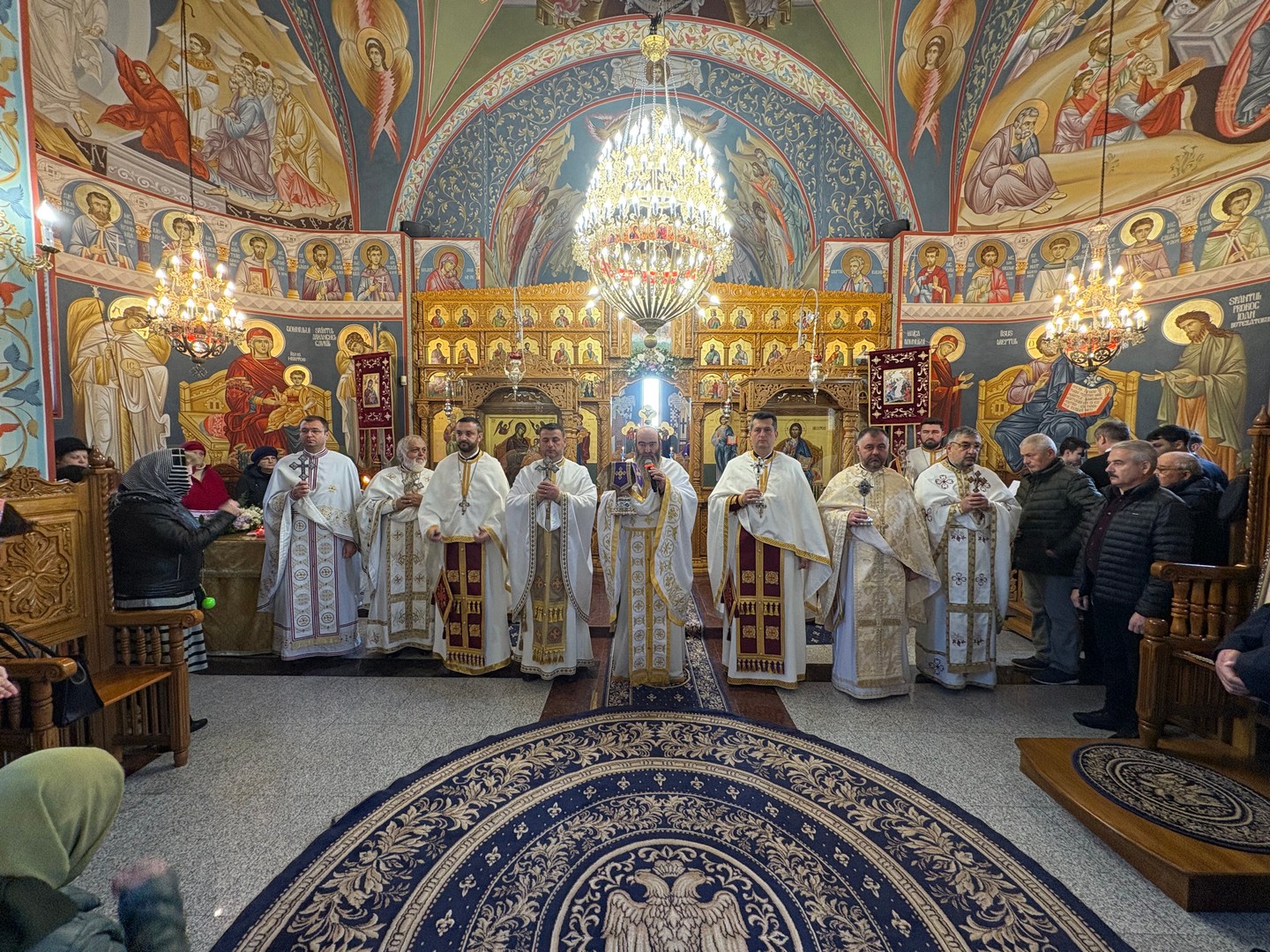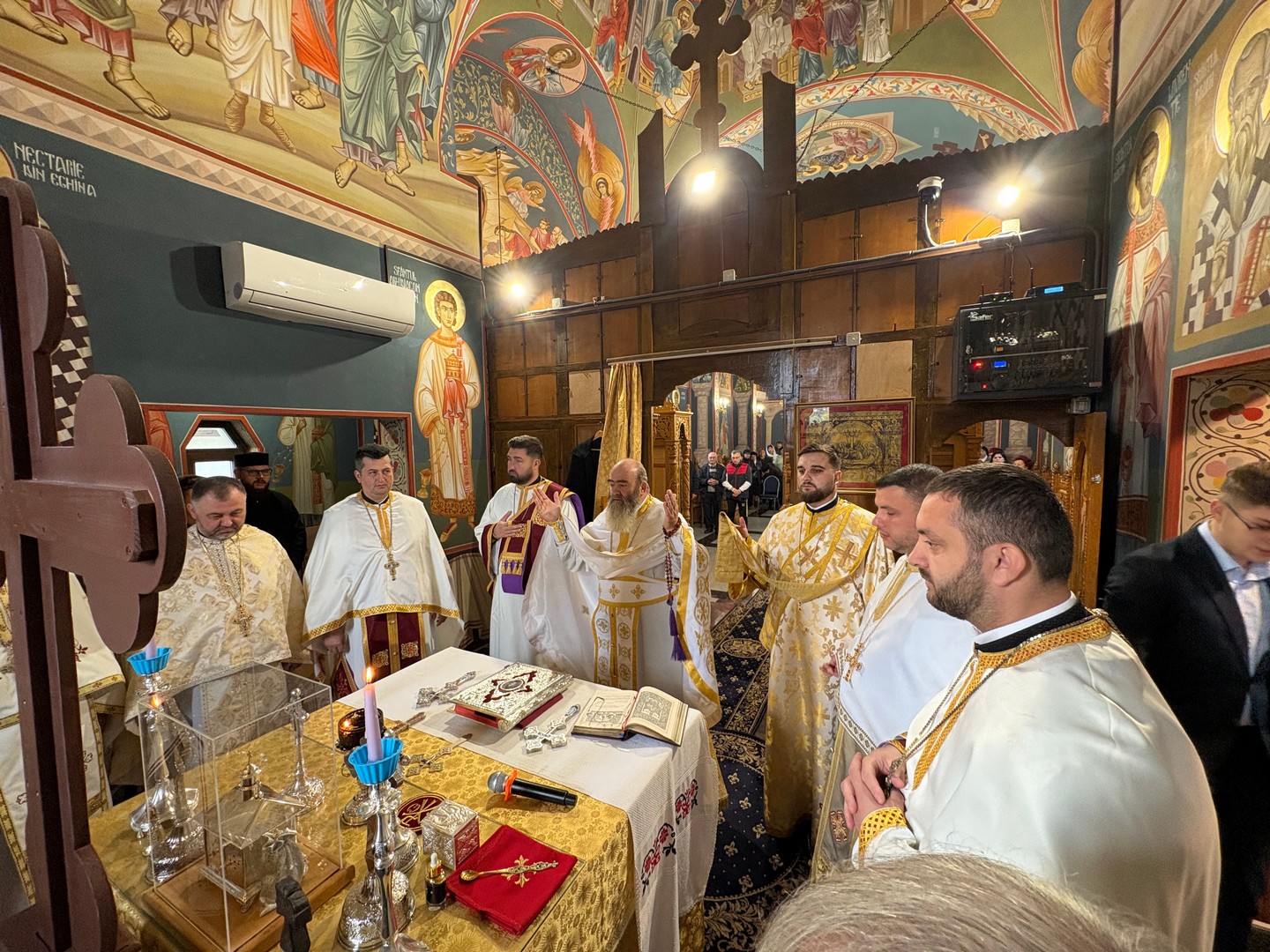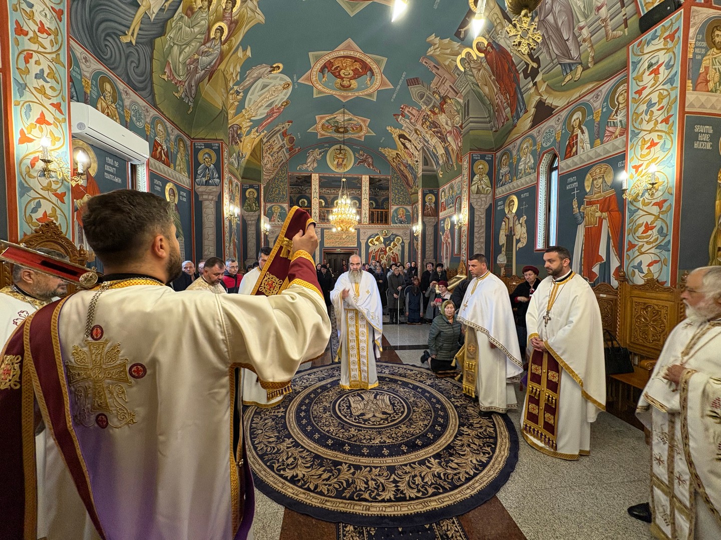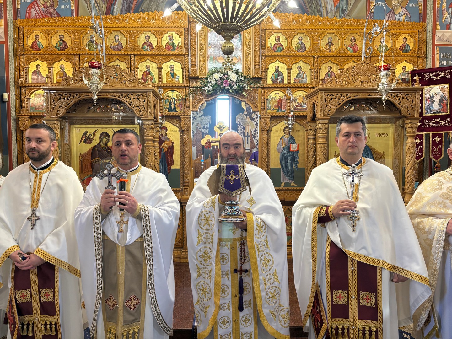 Sfânta Liturghie a fost oficiată de preacuviosul părinte Arhimandrit Rafail, vicar eparhial, înconjurat de un sobor de preoți și arhidiaconi.